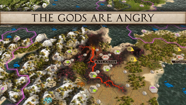 在《克里提亚斯帝国》中,古希腊诸神既善妒又多谋。他们会向你的文明倾泻灾厄:火山喷发改写地形,洪水吞噬沃土,地震令群山隆起或崩塌。